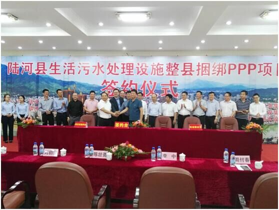 2017年 5月11日,陸河縣生活污水處理設施整縣捆綁PPP項目,在陸河縣縣政協(xié)四樓會議室正式簽約。該項目由中國水務集團旗下深圳市金信安水務集團有限公司與北京金河水務建設集團有限公司、湖北浩宇給排水設計有限公司組成的聯(lián)合體中標。作為項目聯(lián)合體牽頭人,中國水務集團執(zhí)行董事、深圳市金信安水務集團公司董事長李中先生出席了簽約儀式,并作為社會資本方代表,與聯(lián)合體成員北京金河水務集團公司董事長周付春先生、湖北浩宇設計公司領導共同和陸河縣政府PPP項目實施主體—陸河縣住建局共同簽署項目合同。陸河縣縣長陳壯勇,汕尾市住建局副局長劉初棠,縣委常委、常務副縣長葉子美,副縣長彭武標,縣政協(xié)副主席孔金諾,縣政府辦、縣住建、財政、發(fā)改、環(huán)保、國土等部門負責人和各鎮(zhèn)鎮(zhèn)長及有關企業(yè)代表共同出席了本次簽約儀式。簽約儀式由陸河縣副縣長彭武標主持。