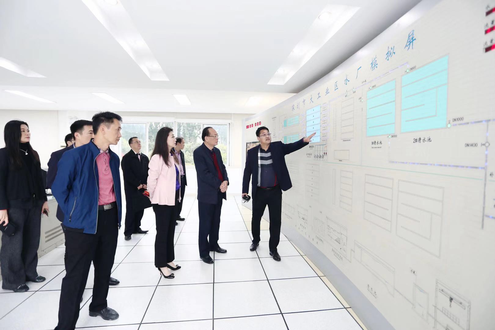劉學(xué)聰書記一行首先前往大工業(yè)區(qū)水廠進(jìn)行參觀,對水廠制水工藝及現(xiàn)場管理進(jìn)行實(shí)地考察了解,隨后現(xiàn)場觀摩大工業(yè)區(qū)水務(wù)公司排水管網(wǎng)運(yùn)營維護(hù)作業(yè)情況。在會(huì)議室座談交流中,工業(yè)區(qū)水務(wù)公司總經(jīng)理王春雷詳細(xì)介紹了公司供排水一體化運(yùn)營模式的情況、公司近幾年取得的成效及未來發(fā)展規(guī)劃等情況。劉學(xué)聰書記一行還考察了深圳金達(dá)環(huán)境控股有限公司。