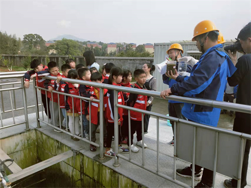 在參觀生物處理池(氧化溝)時(shí),講解員從池中提取污水給小朋友參觀,不少小朋友好奇問(wèn)到“水為什么這么臟?” 講解員解答到:“生活用水、工業(yè)用水會(huì)使清水受到污染,而污水排放又會(huì)使江河湖泊里的水受污染變臟,人們接觸或者喝臟水,就很可能生病甚至中毒、死亡”。走到進(jìn)出水口時(shí),講解員又現(xiàn)場(chǎng)提取進(jìn)廠水、出廠水向小朋友們進(jìn)行對(duì)比展示,小朋友們直觀看到了污水處理的效果,連說(shuō)“太神奇”。
